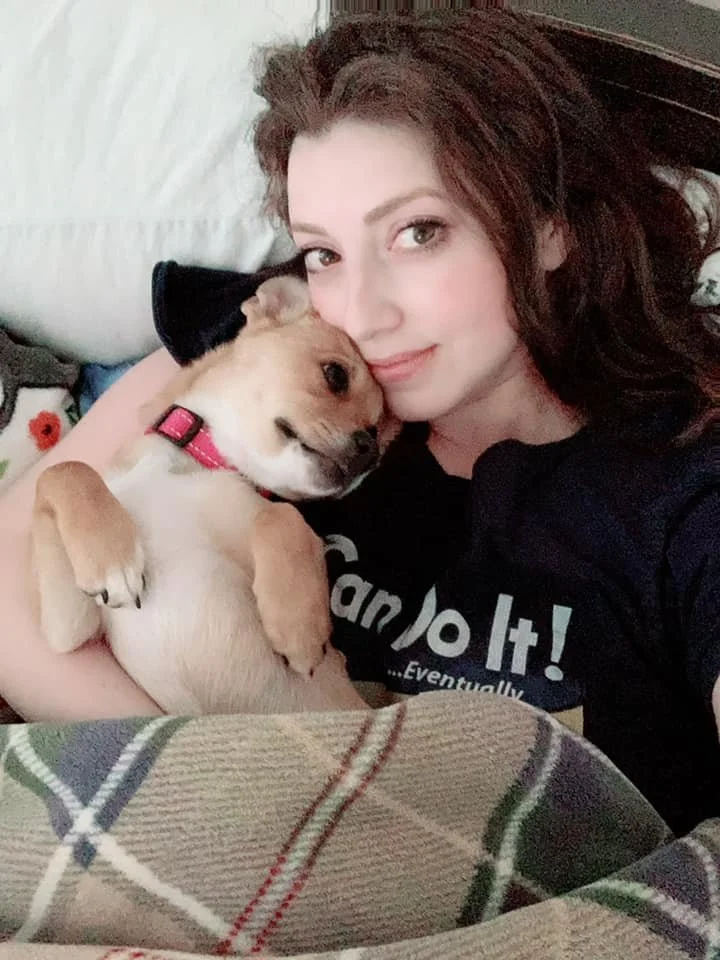 I love hanging out with my pups and husband. Whether its outside playing or inside snuggling together or working on training, as we usually have a foster dog in our home that we are working with.